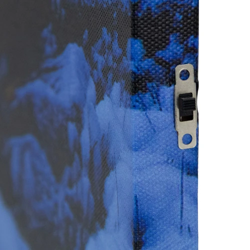The cabin is illuminated from behind the canvas by 3 clear LED lights