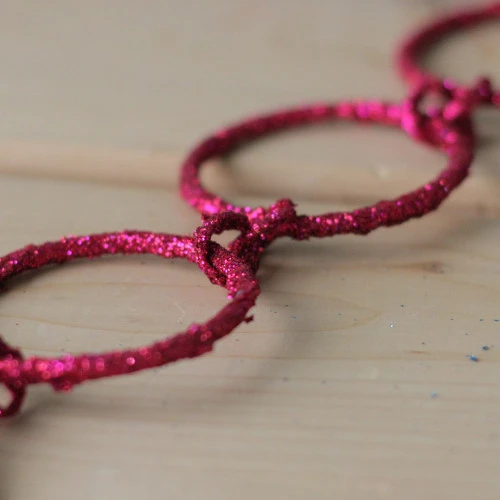 Round rings drenched in sparkling fuchsia glitter make up this funky garland
