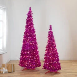 Northlight 6′ Pre-Lit Pink Tinsel Pop-Up Artificial Christmas Tree, Clear Lights