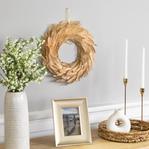 Artificial gold feather wreath