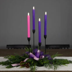 Northlight Set Of 4 Purple And Pink Flickering LED Christmas Advent Wax Taper Candles 9.5″
