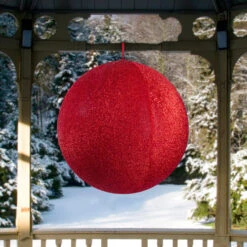 Northlight Inflatable Tinsel Commercial Christmas Ball Outdoor Ornament – 23.5″ – Red