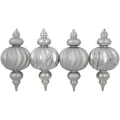 Northlight Commercial Size Shatterproof 2-Finish Finial Christmas Ornaments – Silver -10″ – 4ct