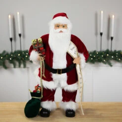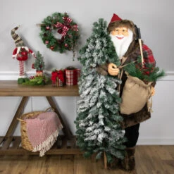 Northlight Standing Woodland Santa Claus With Flocked Alpine Tree Commercial Christmas Figure – 5′
