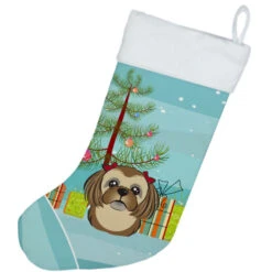 Christmas Tree And Chocolate Brown Shih Tzu Christmas Stocking BB1621CS