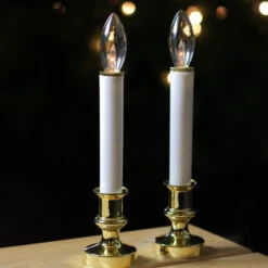 Northlight 8.75″ Pre-Lit White And Gold LED C5 Flickering Christmas Candle Lamp With Handle Base