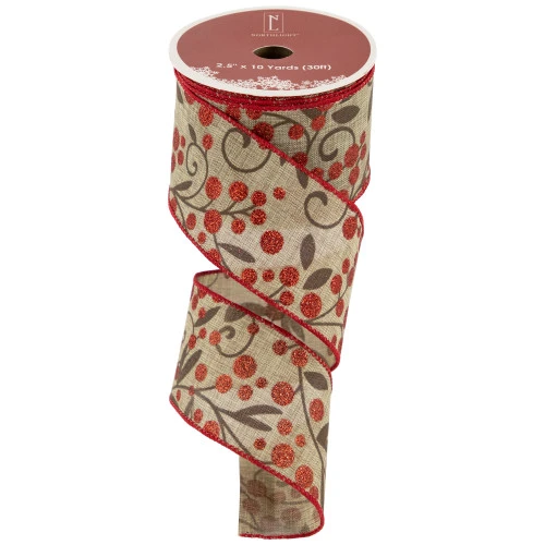 Brown ribbon with red berries on vines