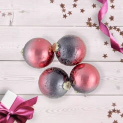 4ct Pink And Grey Ombre Hand Blown Textured Glass Ball Christmas Ornaments 3.25″ (80mm)