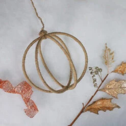Embroidered Leaves Christmas Ball Ornaments – 3″ – Cream – Set Of 6