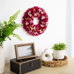Northlight Wooden Floral Spring Wreath With Berries – 13″ – Fuchsia Pink And White