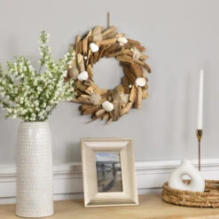 Northlight Natural Driftwood And Seashell Artificial Wreath – 14″